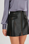 Юбка мини из натуральной премиальной кожи черно-коричневого цвета с молнией спереди - незаменимое дополнение к любому гардеробу.