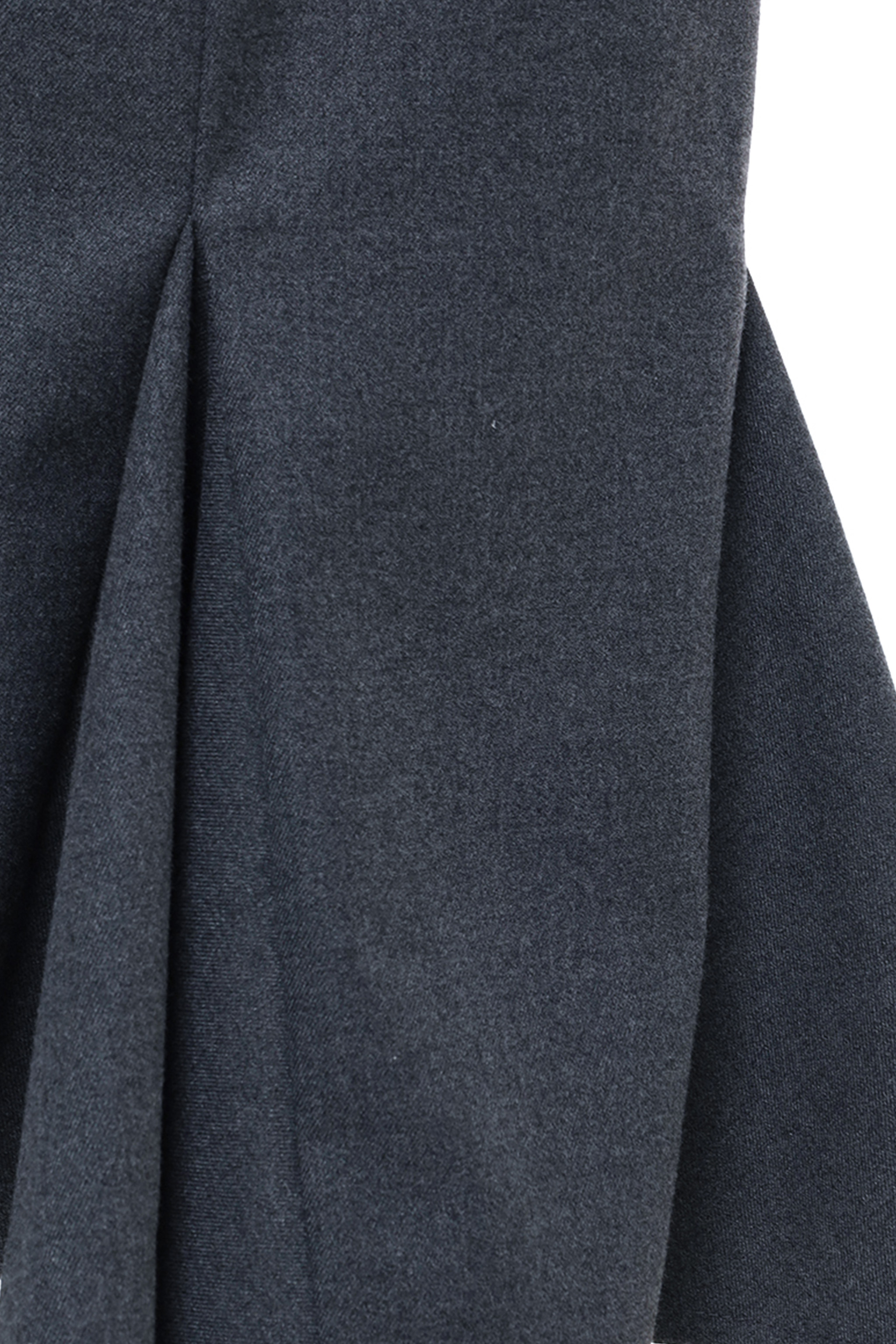 Эффектная юбка с клиньями выполнена из эластичной костюмной ткани на основе шерсти и идеально садится на фигуре. Подол украшен декоративной лентой красного цвета, которая игриво видна при ходьбе. Модель с высокой посадкой на молнии отлично подойдет для офисных будней и впишется в любой гардероб.